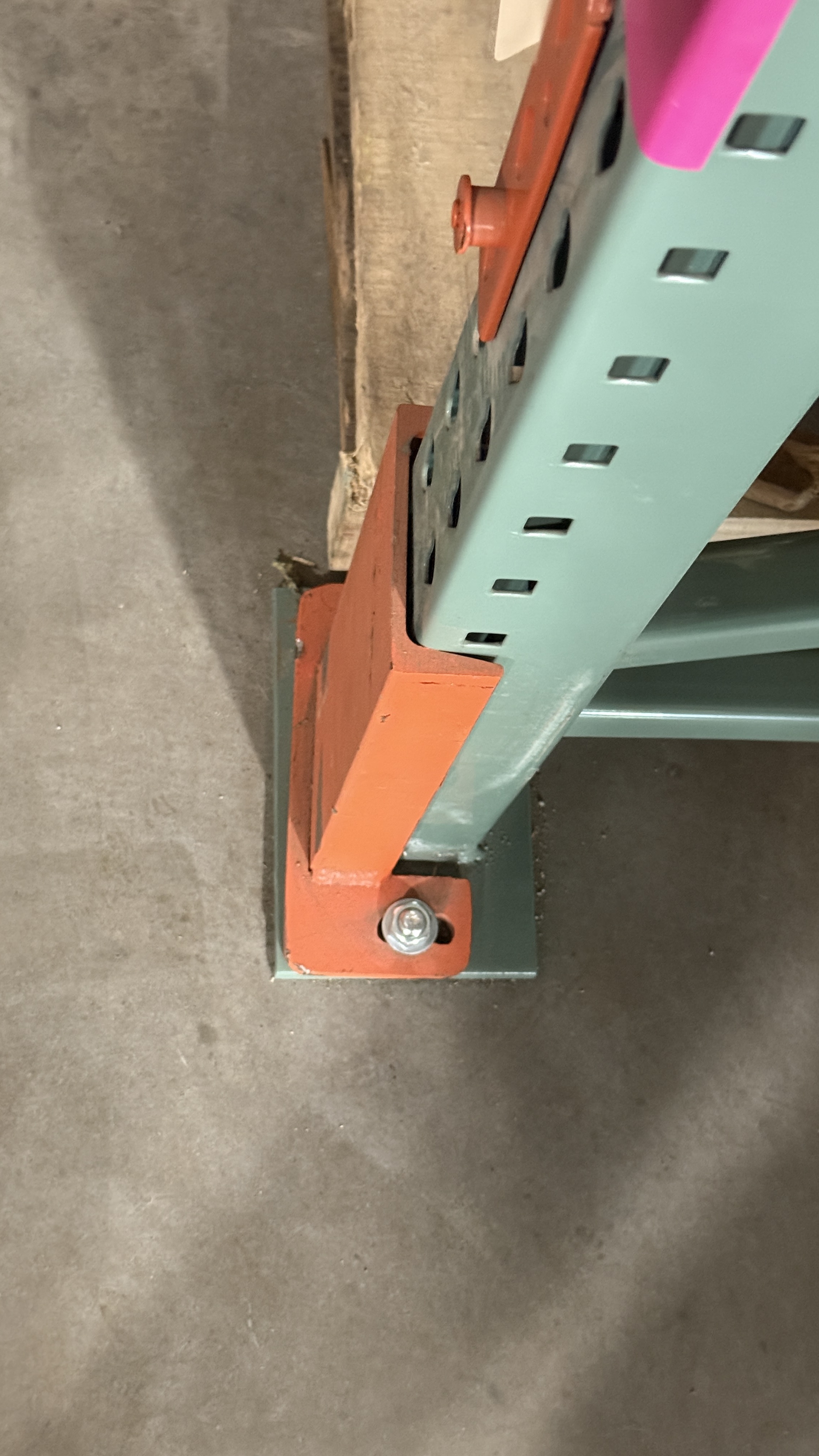 - Cross-aisle columns at intersections where forklifts travel perpendicular to the racking